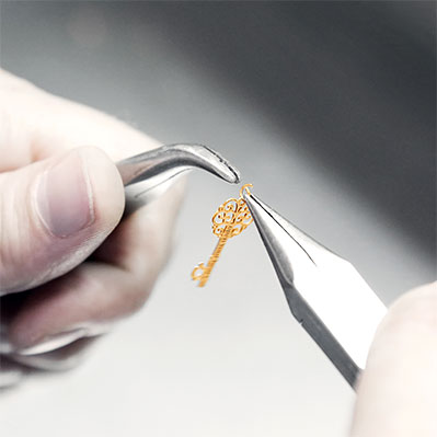 Complicated jewelry, which consists of several parts, goes in for assembling. Here, earrings get locks attached, pendants get hoops, bracelets are put together and other operations take place. The Quality Inspection always tests how reliable the mounting is.